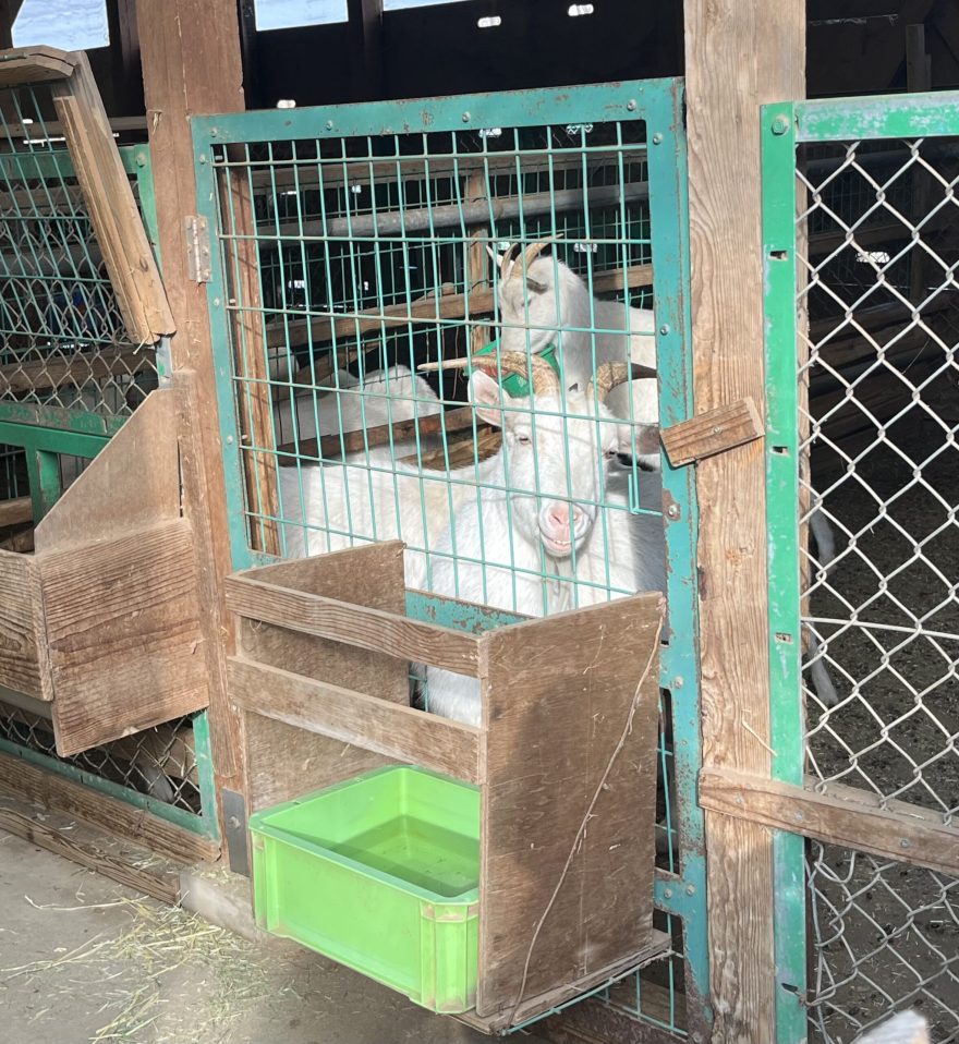 ヤギ小屋やうさぎ小屋周辺は大きなフェンスで四方を囲まれた敷地内なので、他の動物が入ったり、中で暮らす動物たちが脱走しないように工夫されていました!