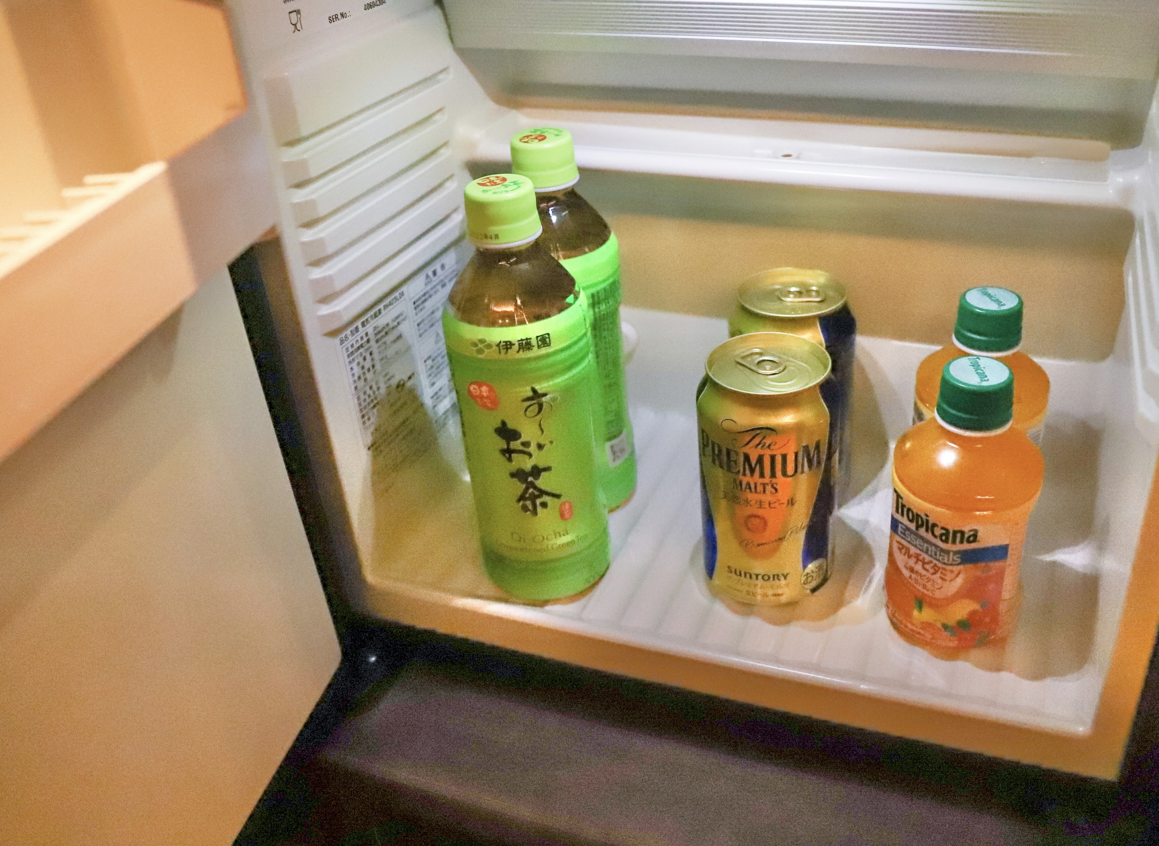 こういう旅館の冷蔵庫の中の飲み物って有料なことが多いじゃないですか。このお部屋のこの飲み物は無料…!!宿泊者は自由に飲んでよいのです。お茶やジュースはわかるけど、ビールまで無料で飲んでよいのは凄い…!!